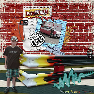 I scrapped some Route 66 pictures with Teen Angst, a kit by sherriejd . Perfect for the pictures from our vacation! We took the I40 and visited several towns on the original route 66.